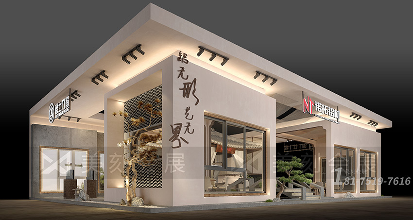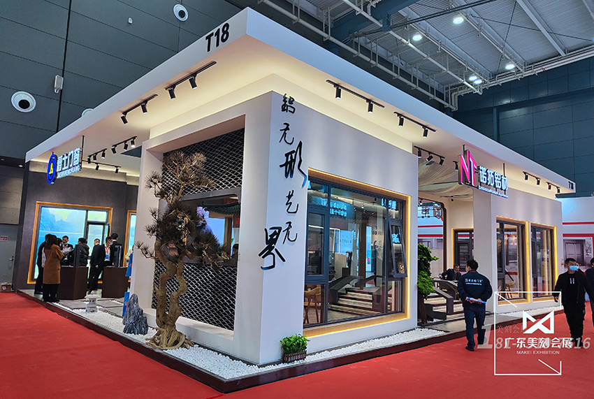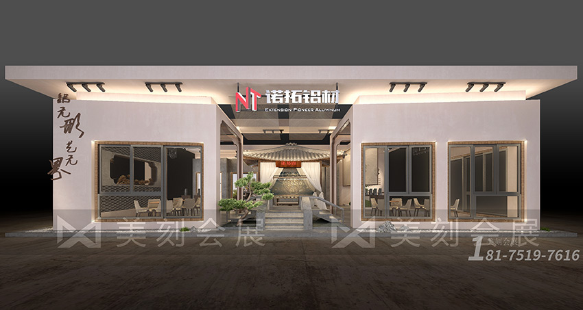 美刻會展根據(jù)諾拓鋁材“鋁無形,藝無界”的理念,在展臺設計時用空間與藝術融合,最終搭建出回溯自然、出入古今的展臺。話不多說,讓我們直接看一幅極有畫意的展臺: