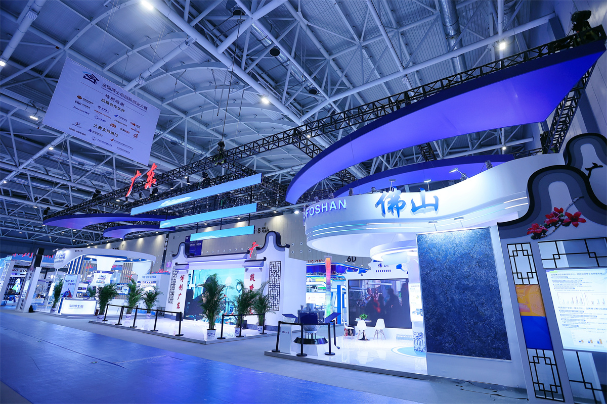 博采科技精華、創(chuàng)新引領未來,美刻會展有幸全程深度助力本次大賽,從三月前美刻接到大賽組展方的合作意向起,美刻團隊立馬成立專題項目組。從提案到定稿中間經歷了無數次修改,也忘記了加了多少個通宵的班,中間又經歷疫情的延期。美刻的小伙伴們從來不畏艱難,在他們心中的理念是用最好的狀態(tài)做最好的效果,全力以赴。第一屆全國博士后創(chuàng)新創(chuàng)業(yè)大賽總決賽在廣東佛山舉辦,是南粵的榮光,也是美刻人的光榮。作為宣揚大賽的主形象,定位既要有海納百川、敢拼敢闖的廣東精神,又要有引領世界發(fā)展的中國氣魄。廣場主視覺打卡點采用圓形造型,寓意著圓滿、融合、博采,中心是全國各地的城市剪影代表本才選手來自世界各地,博士后博采眾長,引領世界科技潮流。